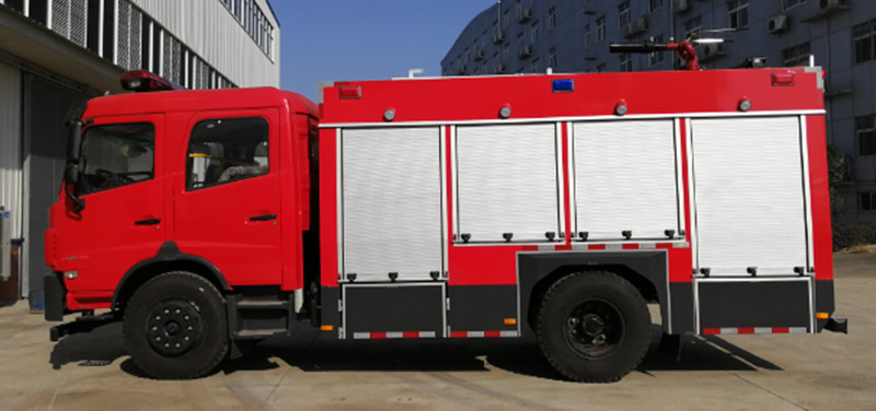 整車由消防員乘員室和車身兩大部分組成,車身布置采用三分體式結(jié)構(gòu),兩側(cè)為器材箱,中部為水罐,后部為水泵房,罐體為平行六面體廂式容罐。 |